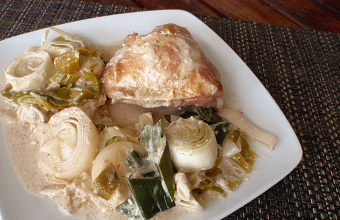 - 3 cuisses de poulet (si elles sont congelées, décongelez-les la veille dans le bas du frigo),