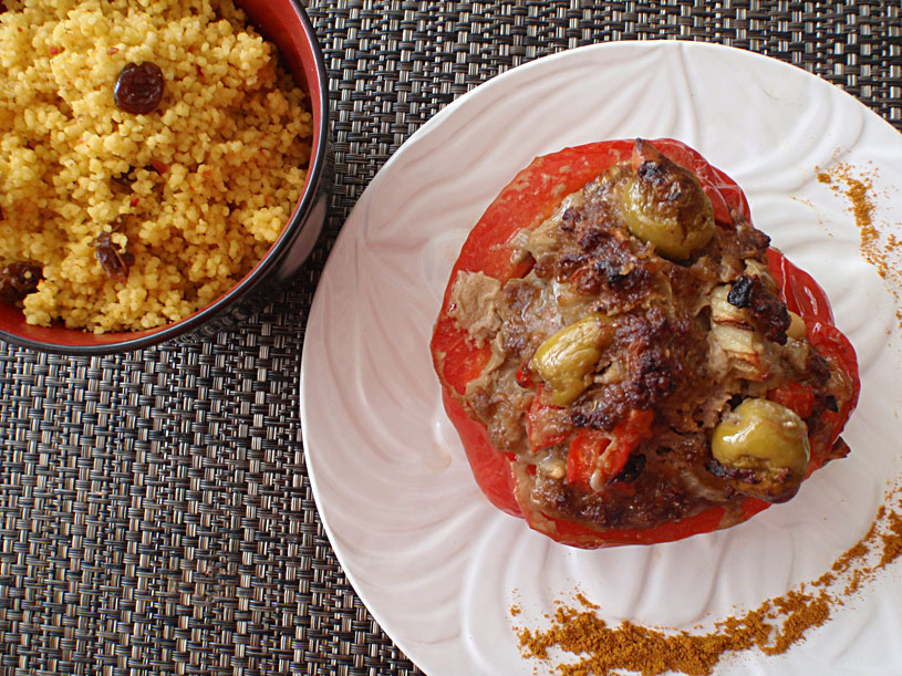 À servir avec de la semoule aux épices, cuite avec quelques grains de raisin sec. (Cette semoule tout assaisonnée se trouve maintenant dans toutes les marques. Je l’achète à Super U mais on peut s’en procurer aussi à Carrefour ou Géant Casino…)