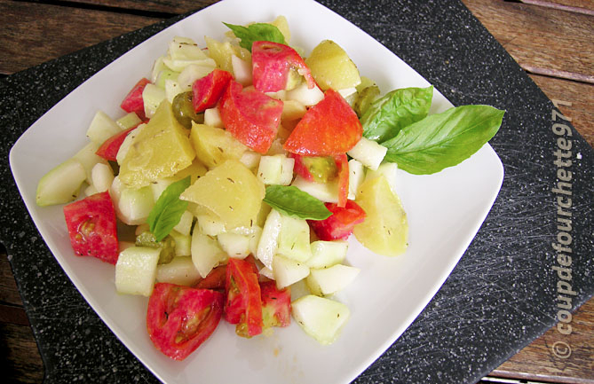 - Dressez vos assiettes avec deux à trois fagots et la salade de tomates sur le côté.